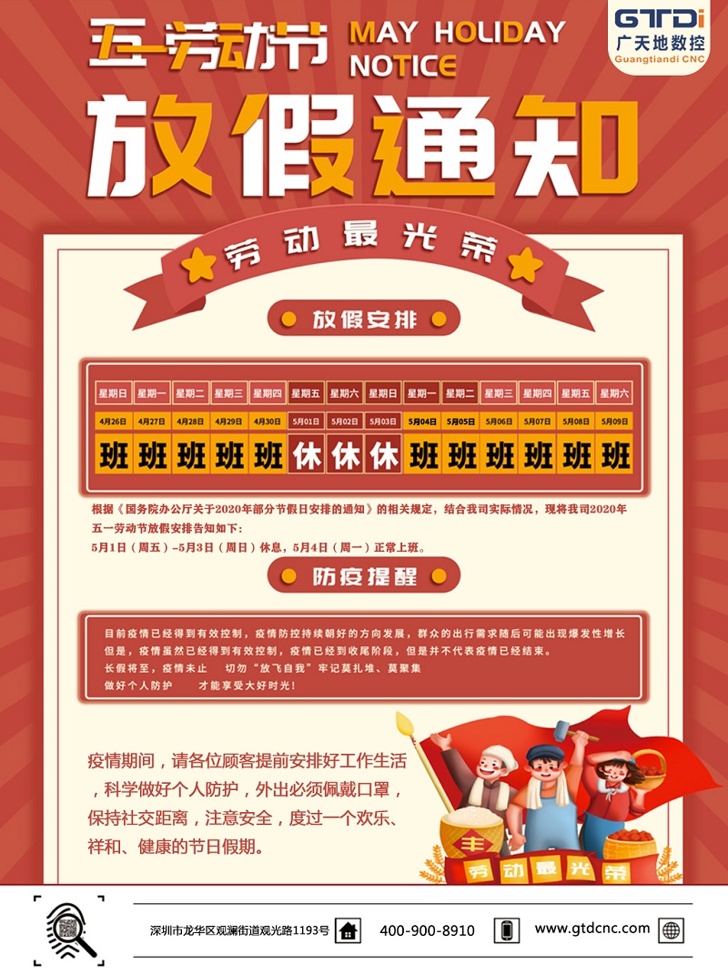 2020年bg真人电子数控公司五一劳动节放假时间安排