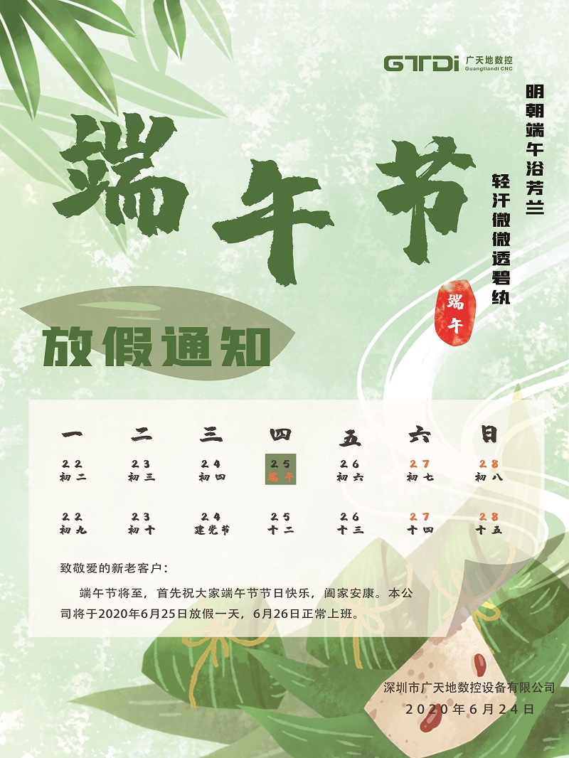bg真人电子数控2020年端午节放假时间通知