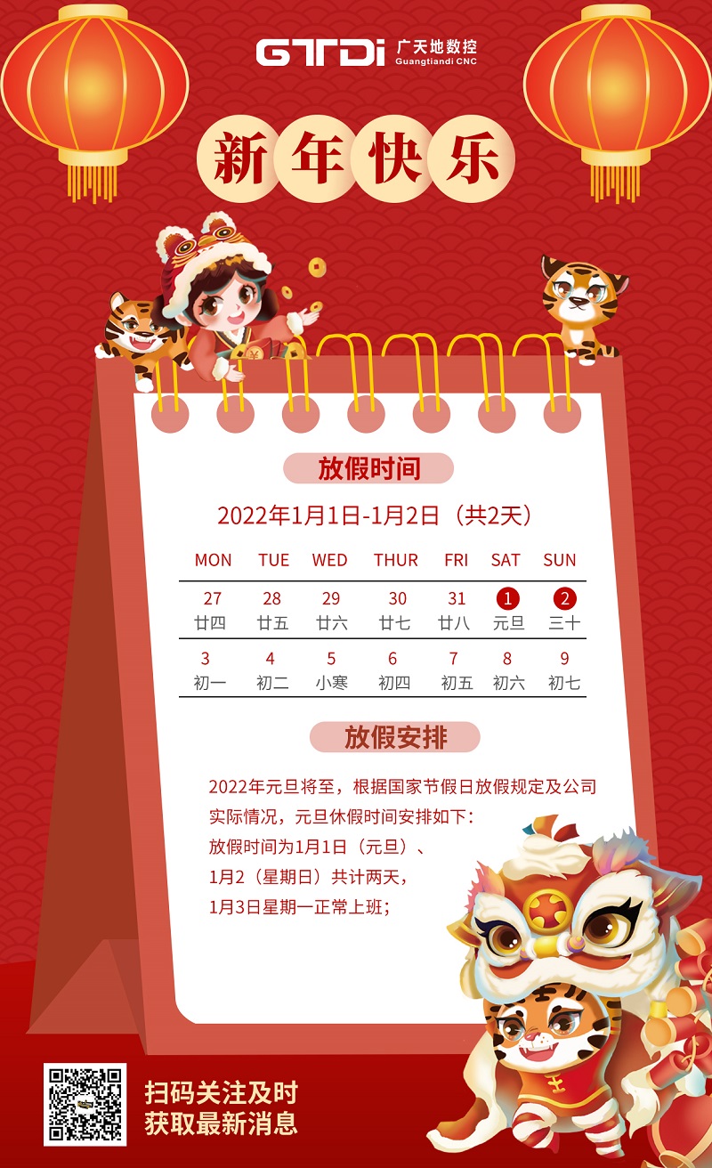 特此,根据国务院法定假期有关规定,并结合公司实际生产情况,于2022年1月1日至2022年1月2日,放假两天,1月3日正常上班,造成不便,敬请谅解!!!